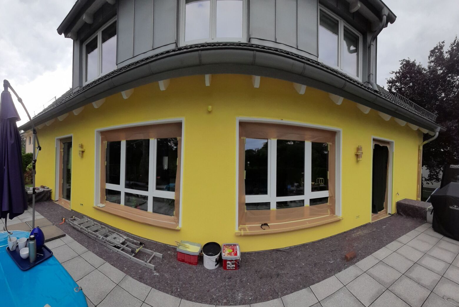 Wie bei ganz klassischen Malerarbeiten, werden auch beim Fassade streichen hier Bereiche die ungestrichen bzw. unberührt bleiben sollen abgeklebt. Dies geschieht mit einem schonenden Krepp, welches ihre Untergründe nicht eingreift.